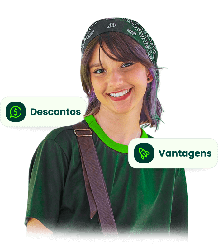 Descontos em diversas áreas, como: cinemas, educação (cursos, livros...), transporte público e medicamentos. Também contamos com cashback garantido em compras com nossos parceiros.